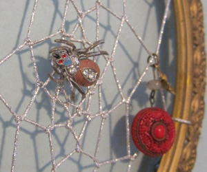 2013 - An assemblage of vintage objects from the late nineteenth and early-to-mid twentieth centuries, to create this dreamcatcher woven with antique French silver thread